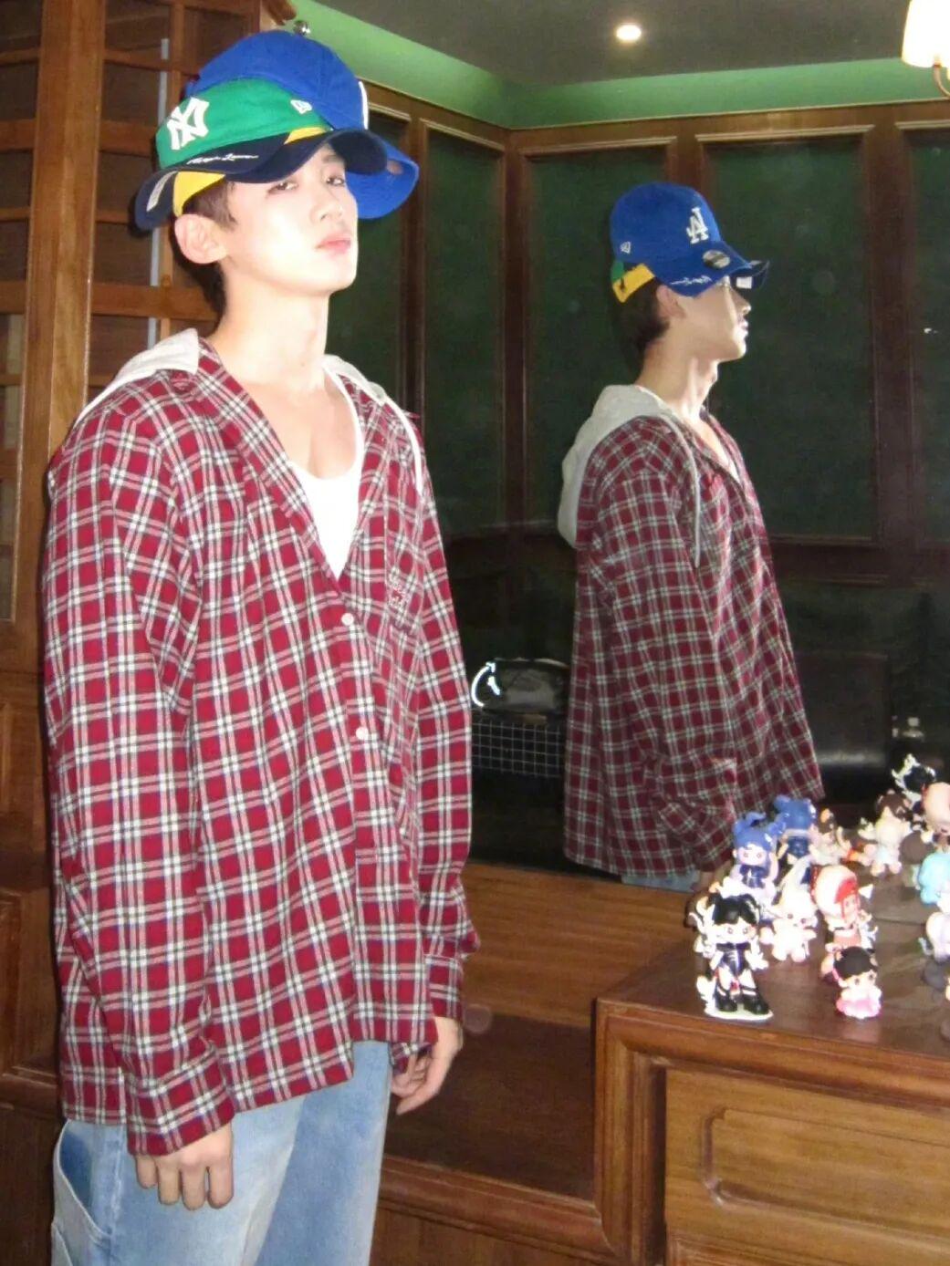 白敬亭则利用格纹连帽外套打造出潮感,复古红棕+白色粗格纹经典不挑人,自带美式复古氛围,下装搭配浅蓝阔腿牛仔裤,再通过撞色棒球帽点睛,日常通勤、探店都能直接照搬。
